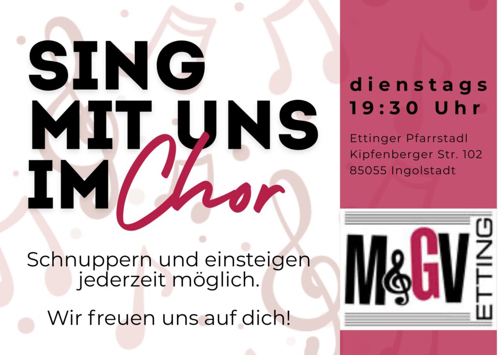 Getreu diesem Motto musizieren wir im Musik- und Gesangvereins Etting bereits seit 1997 in mittlerweile vier Gruppen. Egal ob mit sinfonischen Klängen des Blasorchesters, dem breiten Repertoire des Chors oder mit bayerischem Liedgut der Ettinger Musikanten – damit versüßen wir nicht nur uns selbst unseren Alltag, sondern auch den unseres Publikums während unserer zahlreichen Auftritte im Jahr.